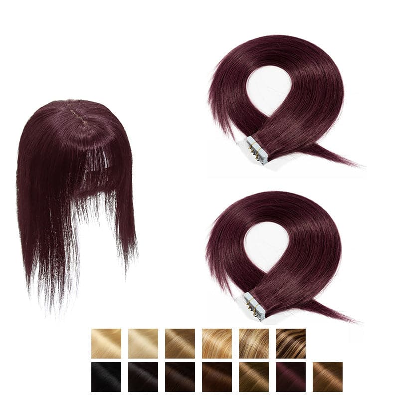 Human Hair Topper With Bangs & Tape Ins 40pcs Bundle More Items Less Cost All Shades